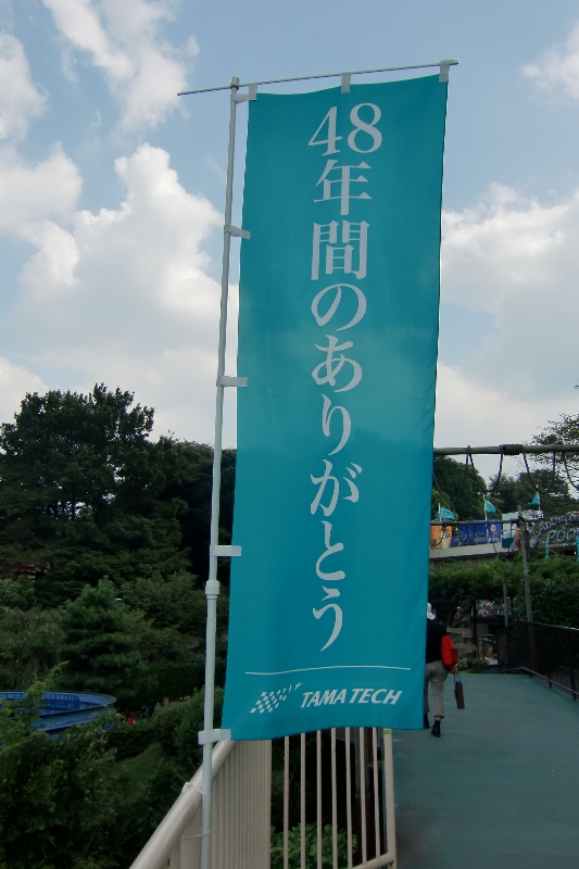 お台場から多摩テックまで2時間…東京を横断してきました。 さてまずはゲートから 9月末までの営業ですが、観覧車左のスペースショットは部品調達の関係で既に営業終了とのこと。 至る所に「48年間のありがとう」のぼりが立っていました。 今回の目的はプール。 PokkaGTの時は入れなかった今年初(最後)のプールです。 13時過ぎに入りましたがこの日は暑かったので丁度よかった。 本当は日曜にしようかと思っていたのですが、翌日は雨でしたので土曜に変更。 14時頃に出て少し園内を回った後、多摩テックを後にしました。 インディジャパンの前には…多分行けないので、これが最後の多摩テックかな。 PR
